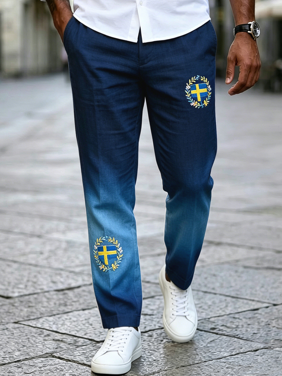 Herrvintage svensk midsommargraduerad bomull-linneslabb byxa