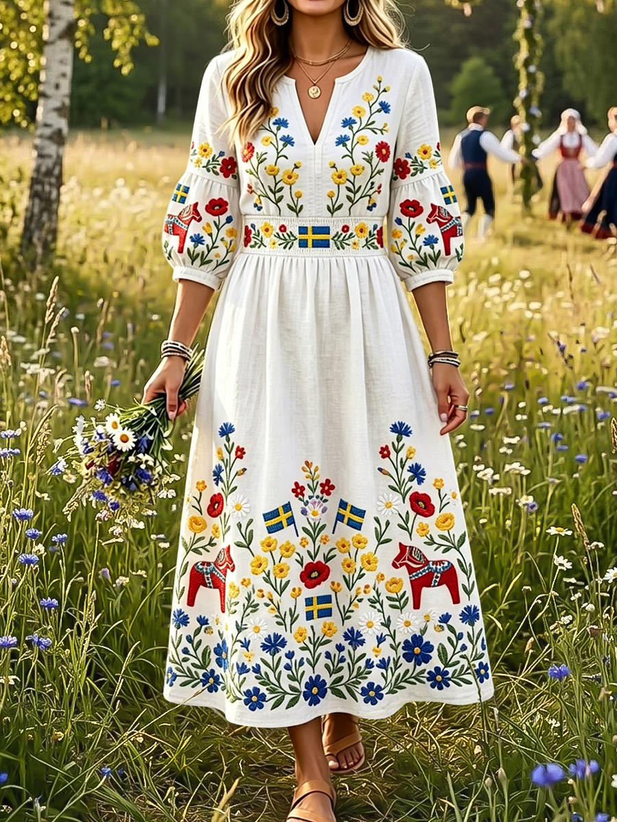 Damer Retro Svensk Midsommar Blommig Karusell Fritidströja