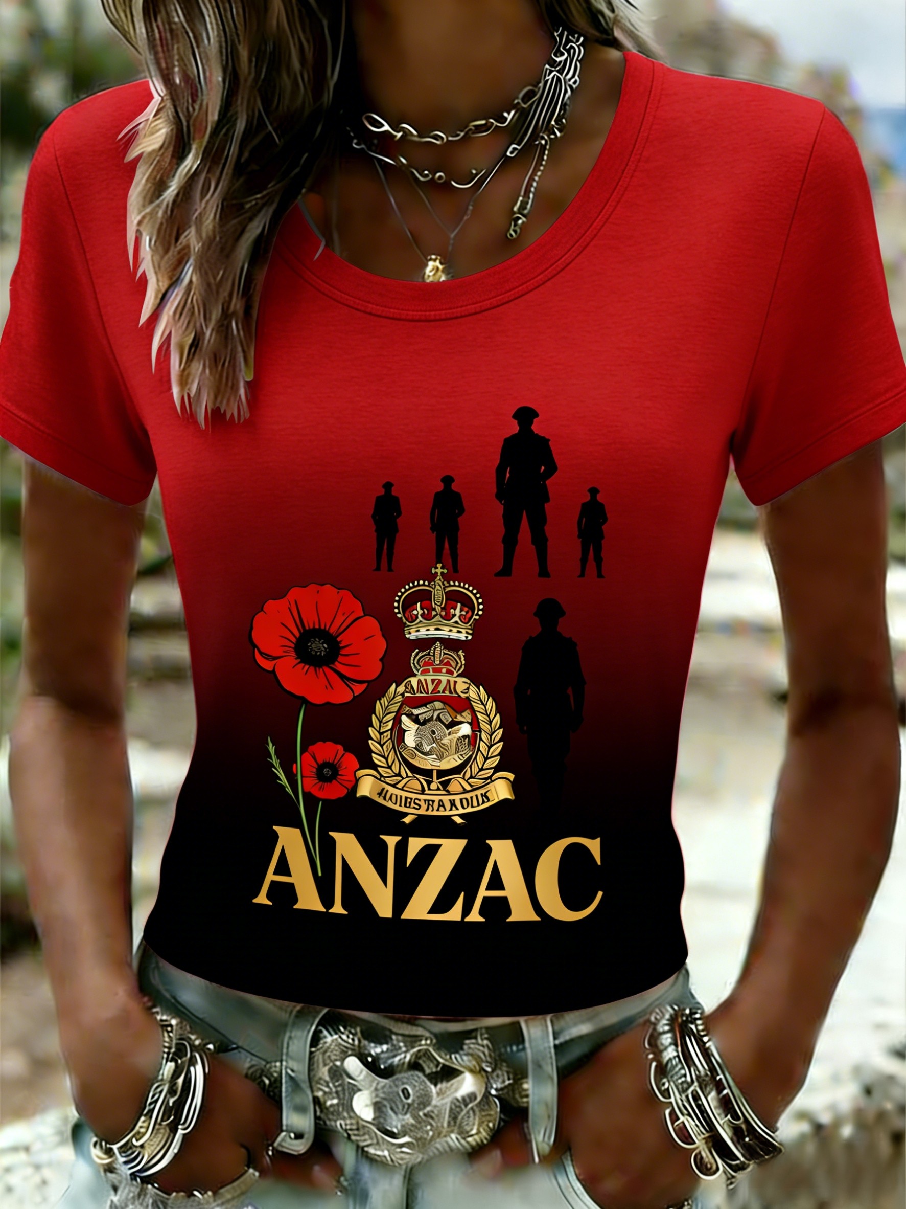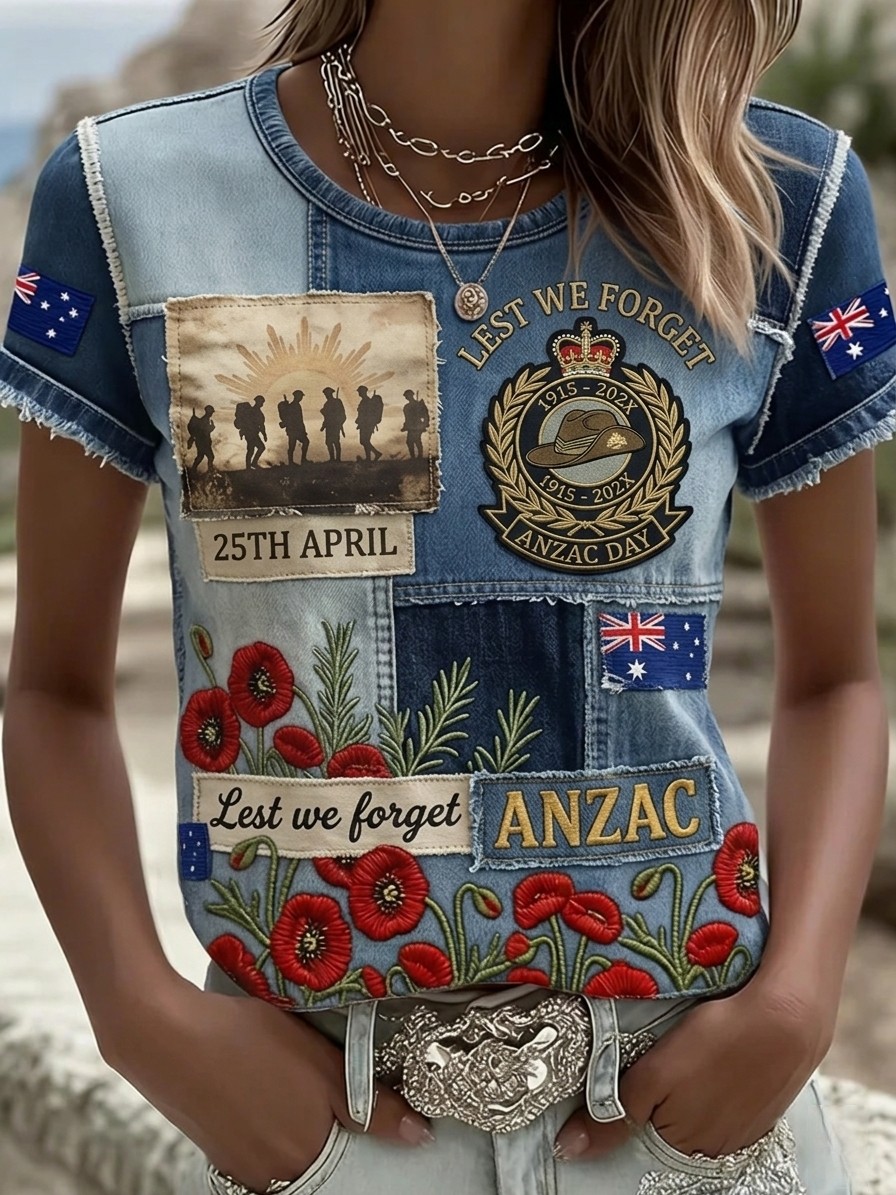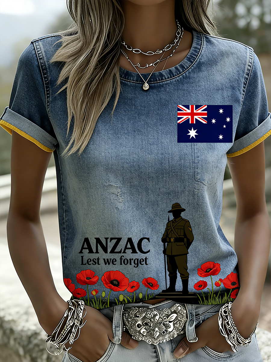 Retro Australian ANZAC Day Print Casual T-shirt