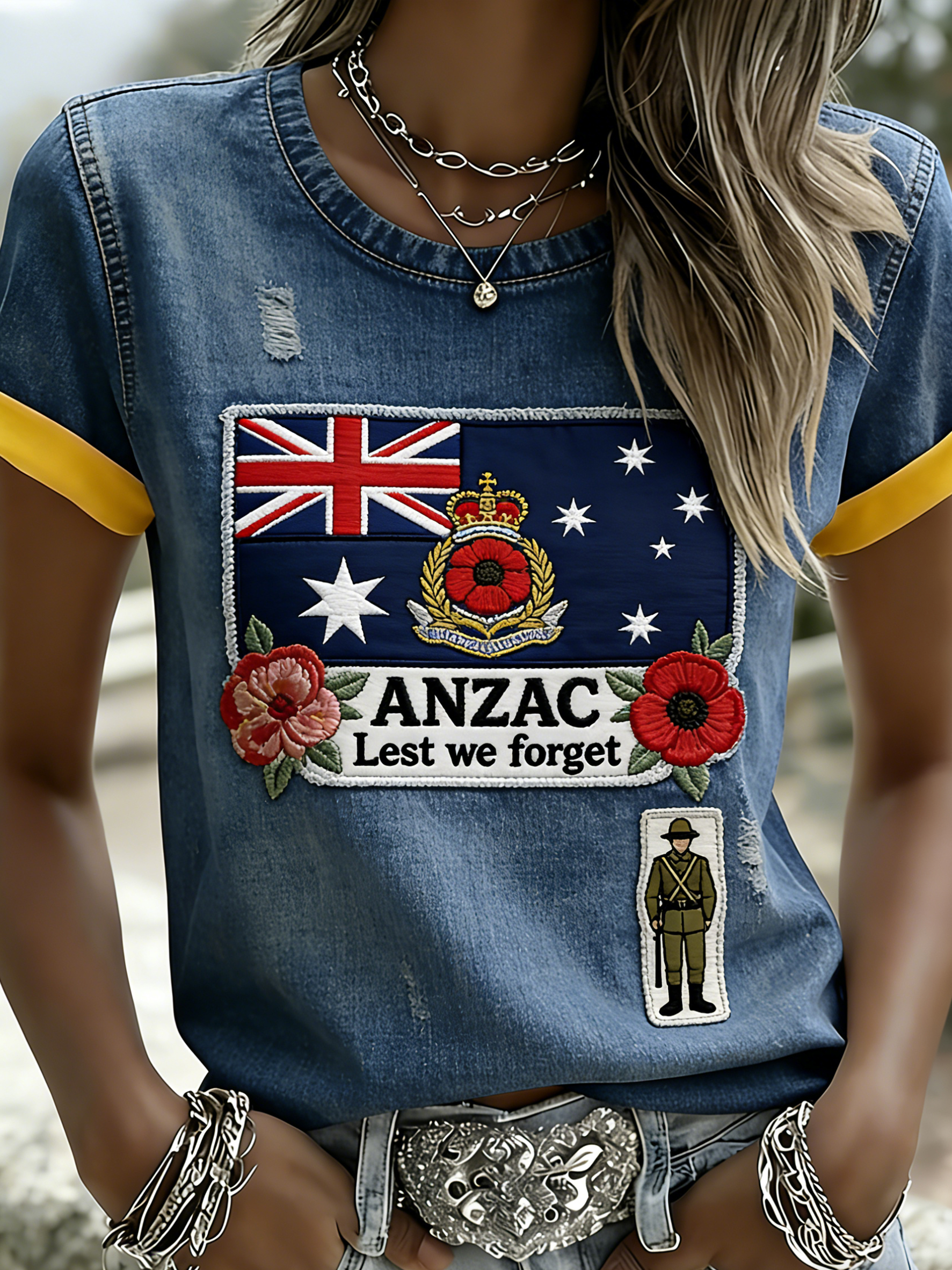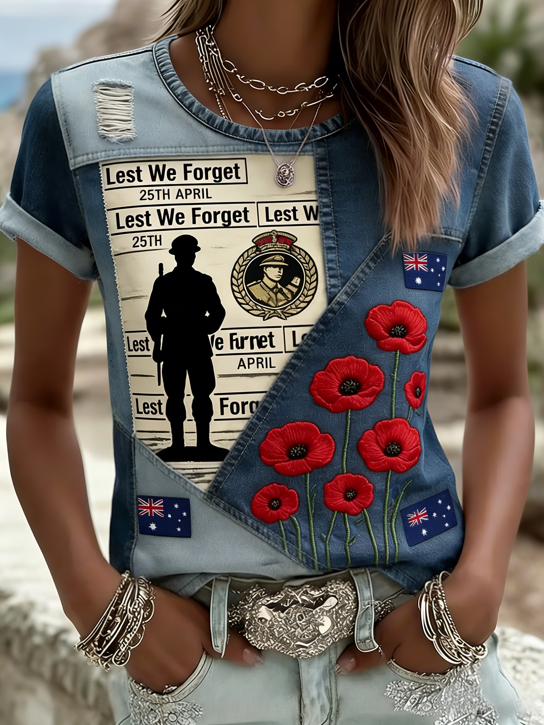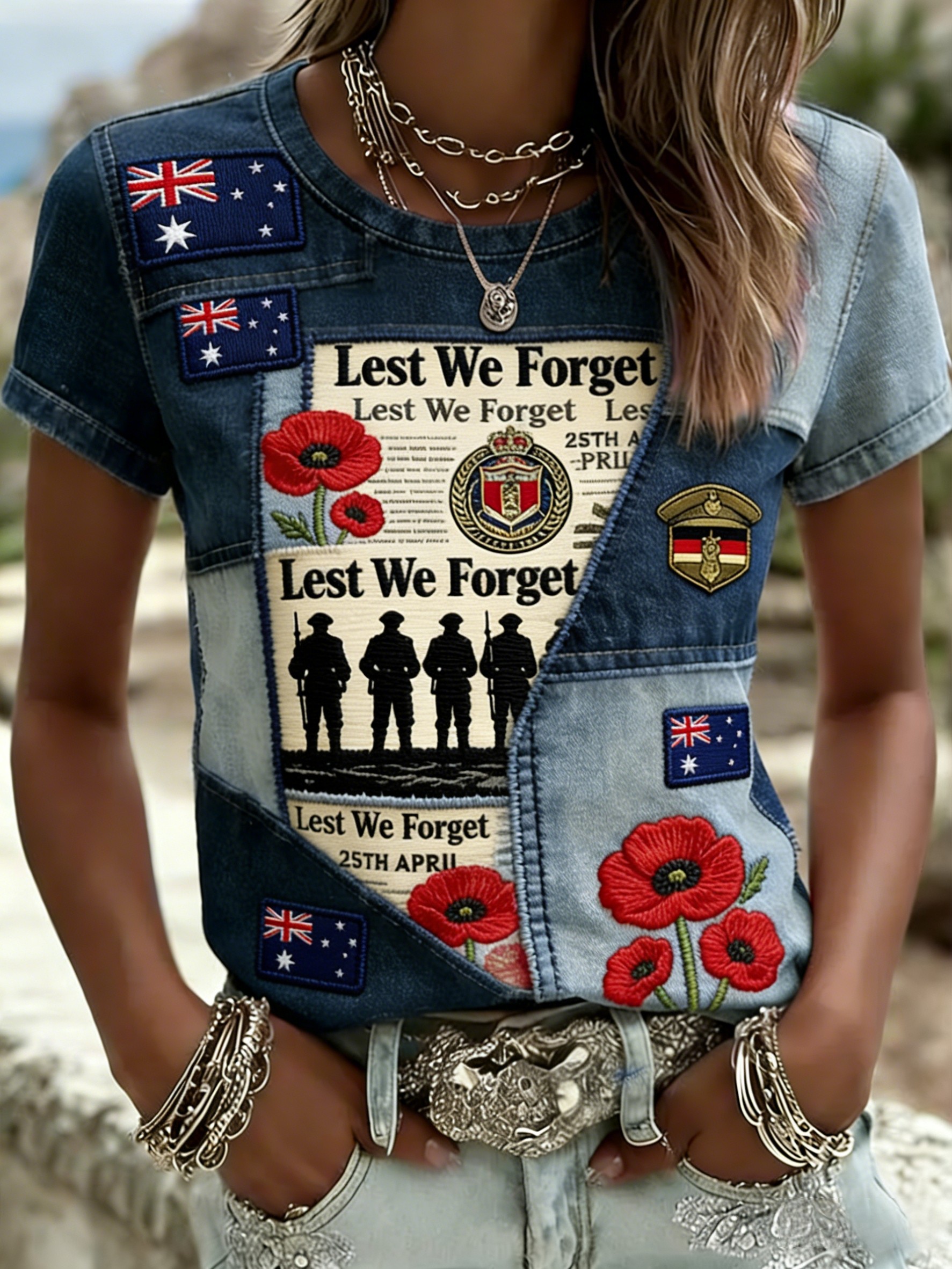 Retro Australian ANZAC Day Print Casual T-shirt