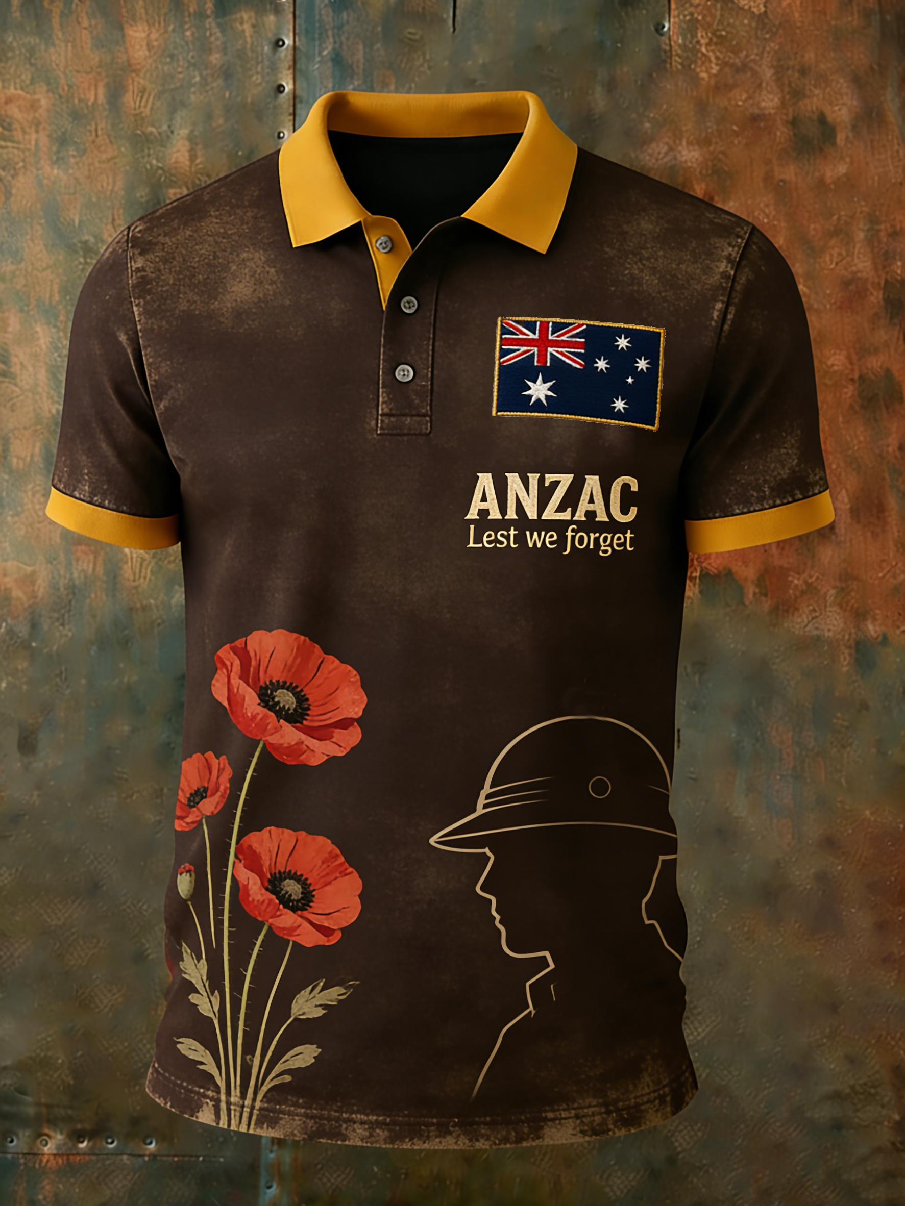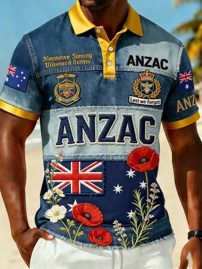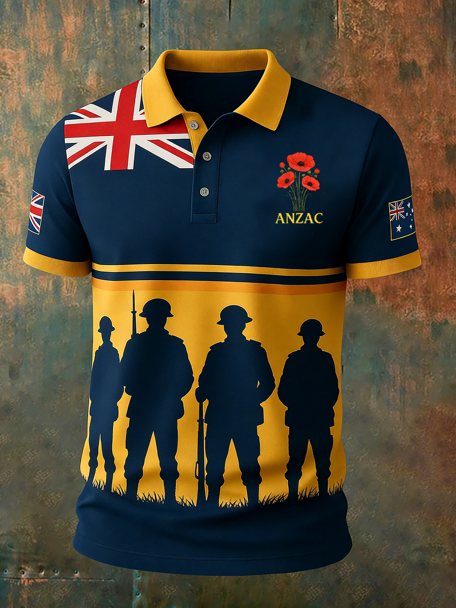 Retro AustralianStyle ANZAC Day Print Casual Polo