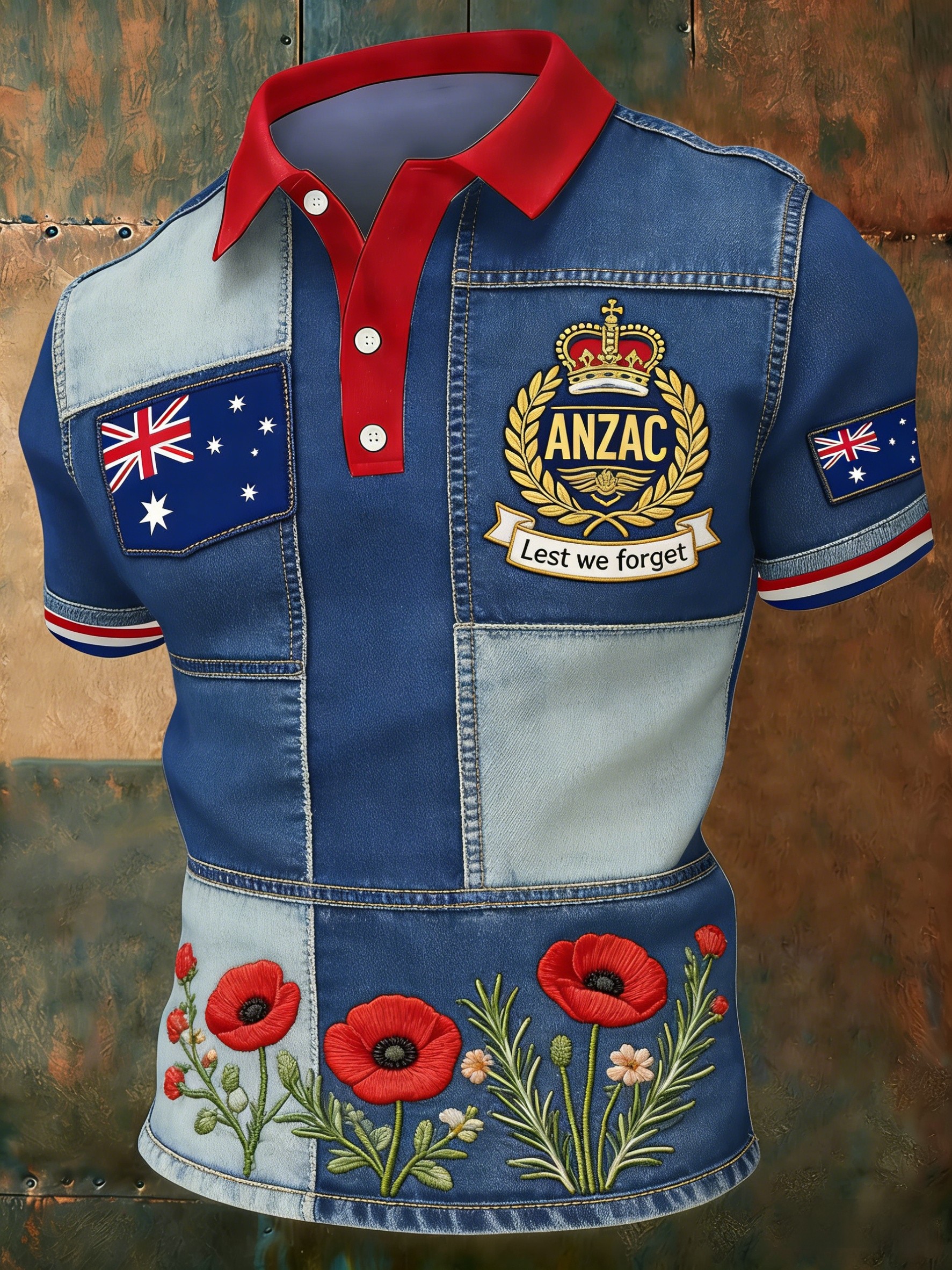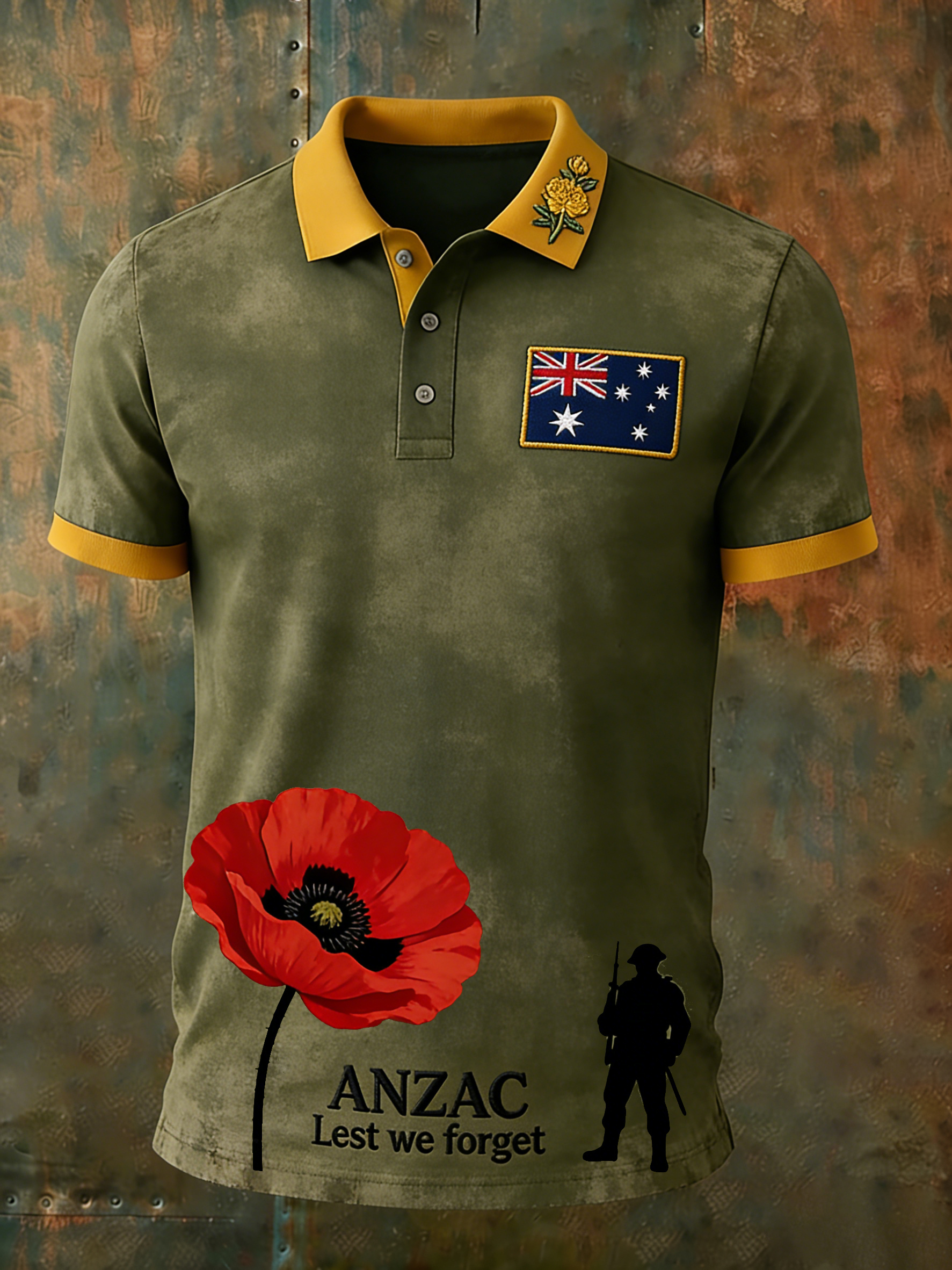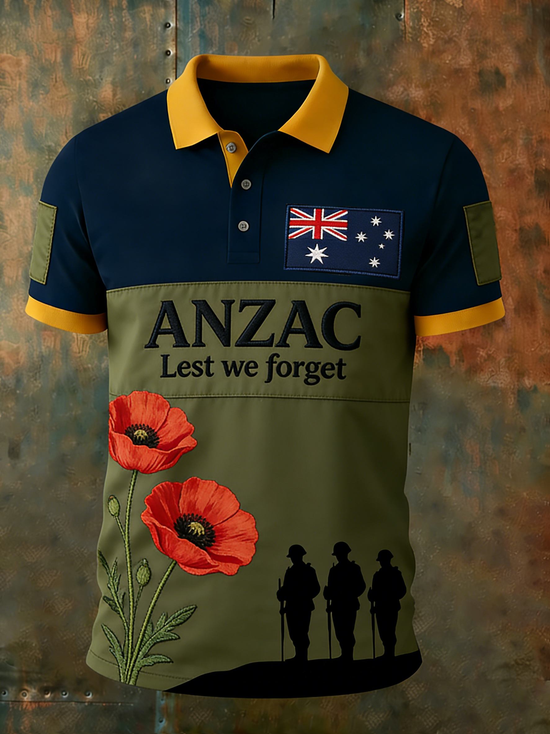 Retro AustralianStyle ANZAC Day Print Casual Polo