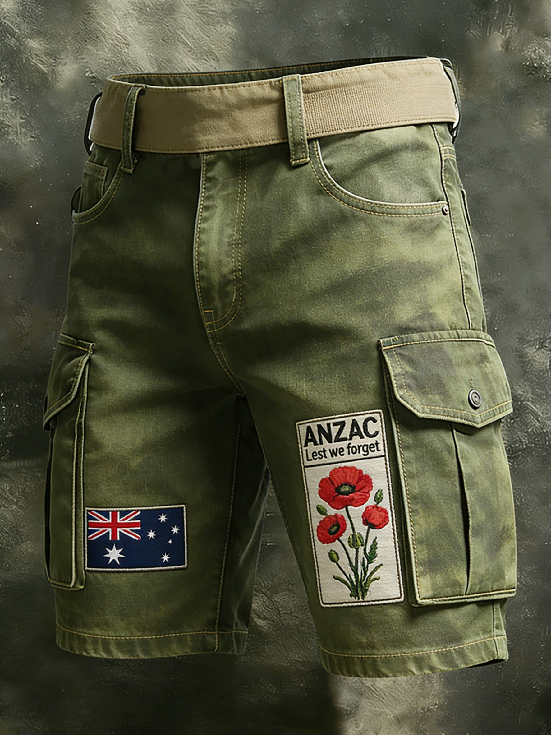 Retro ANZAC Day Commemorative Print Casual Cargo Pants