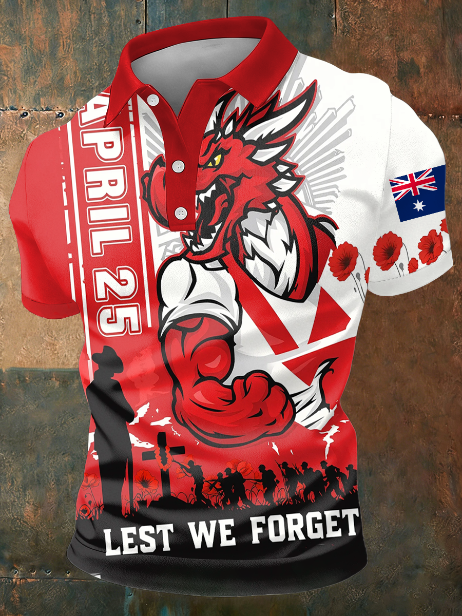 Men's Australia Anzac Day Lest We Forget Short-Sleeve Polo Shirt