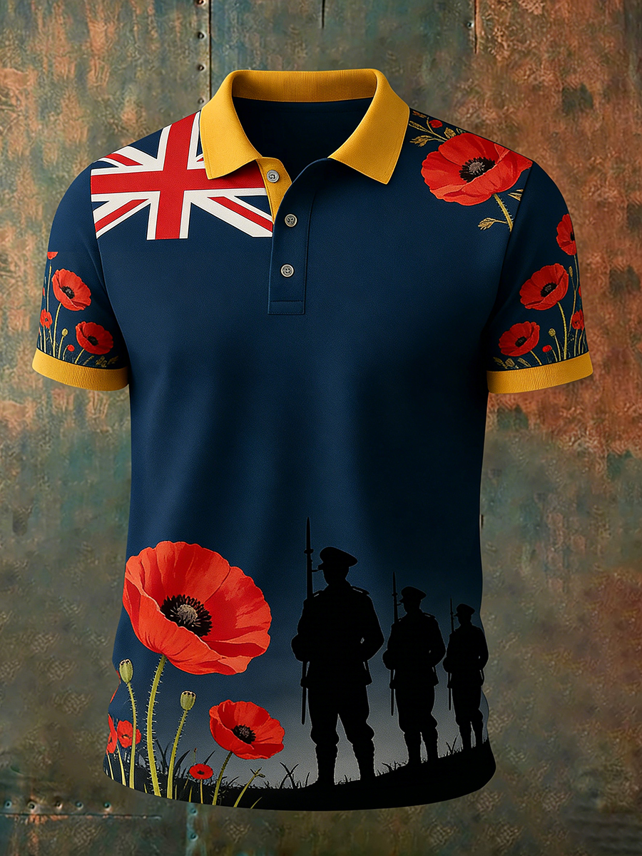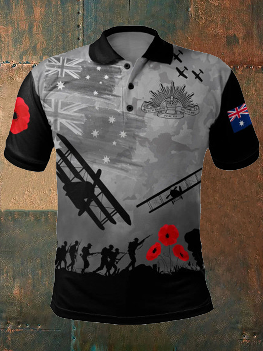 Retro Australian ANZAC Day Print Casual Polo