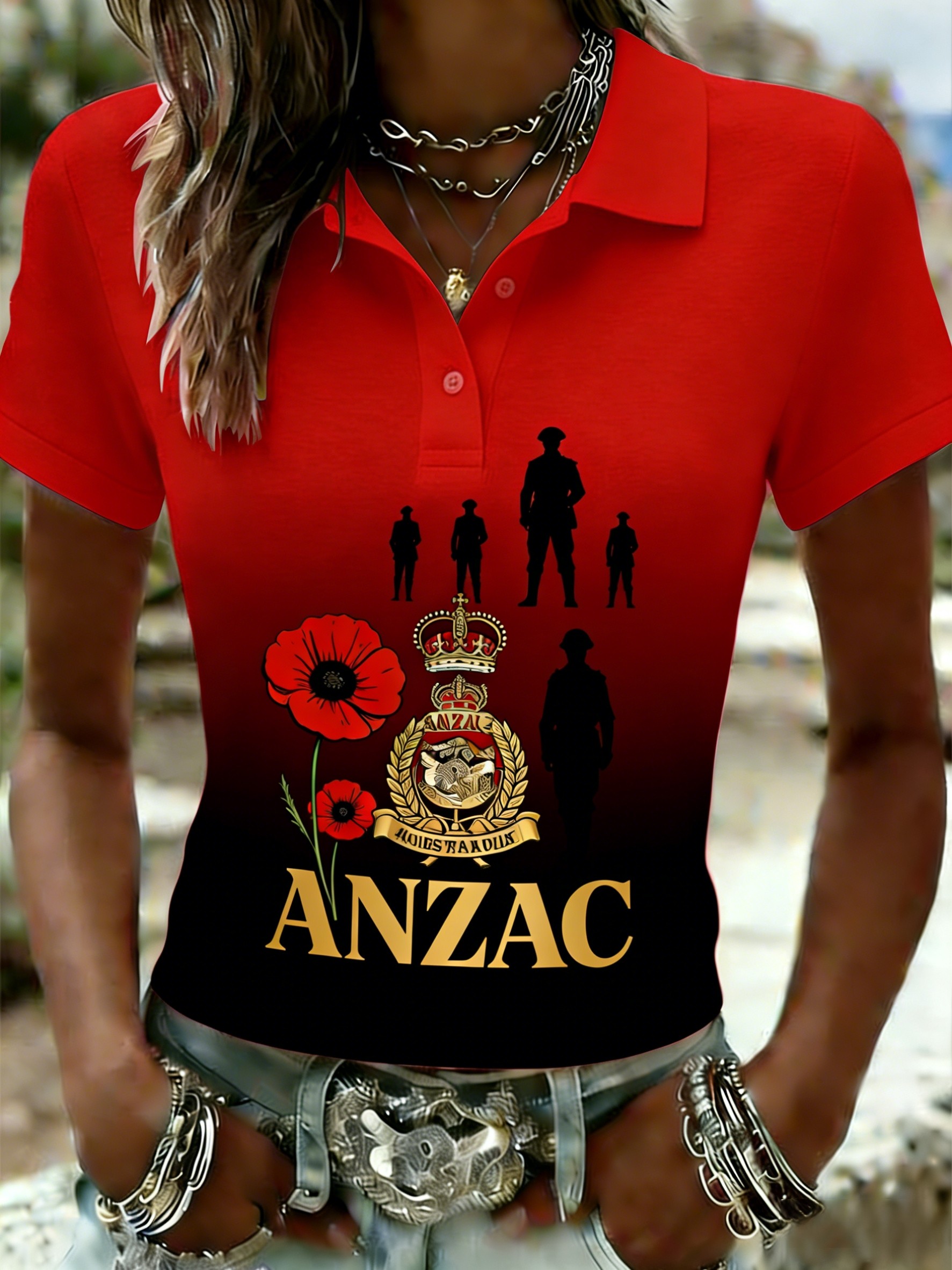 Women's Australia Anzac Day Lest We Forget Short-Sleeve Polo Shirt