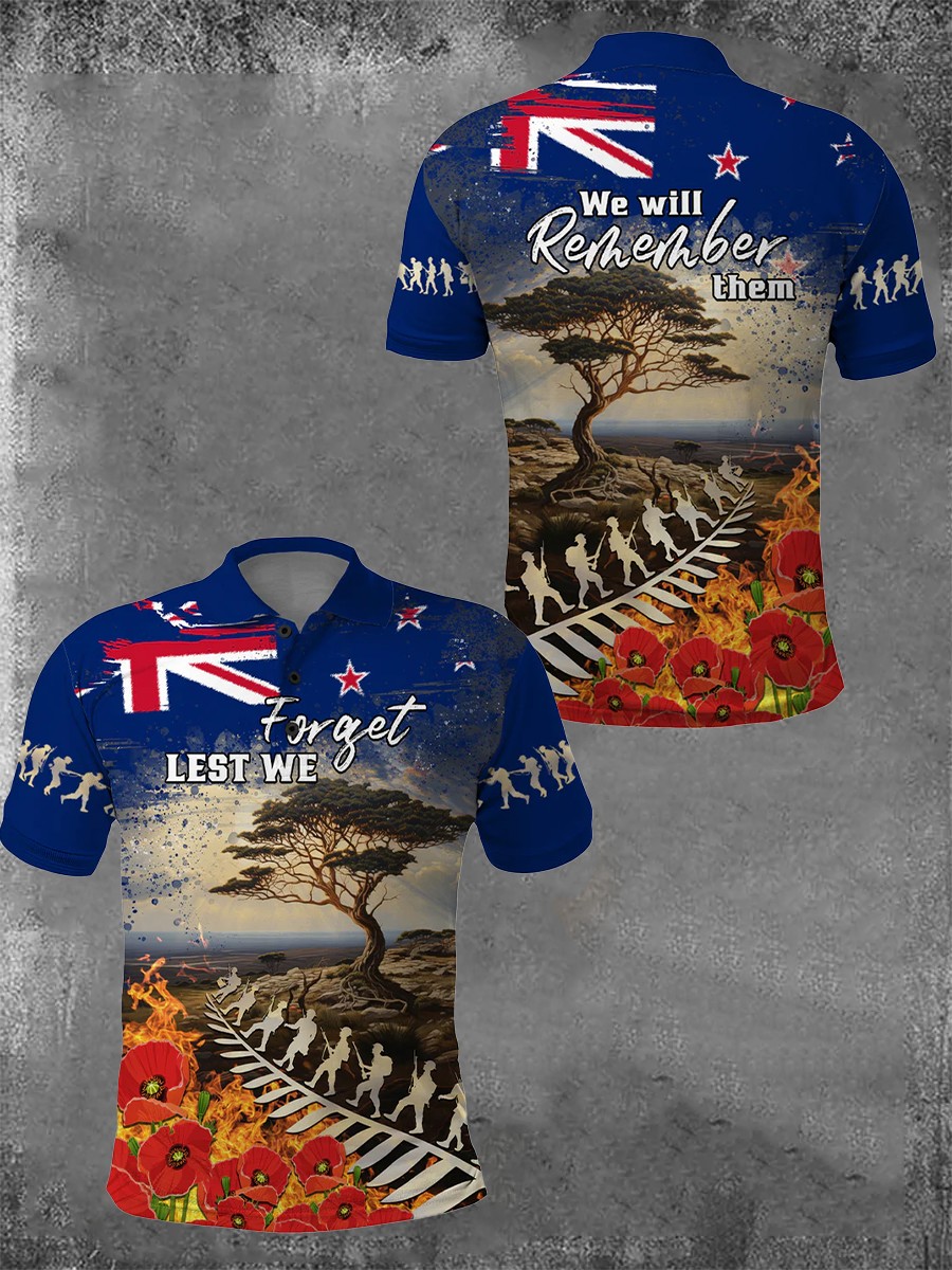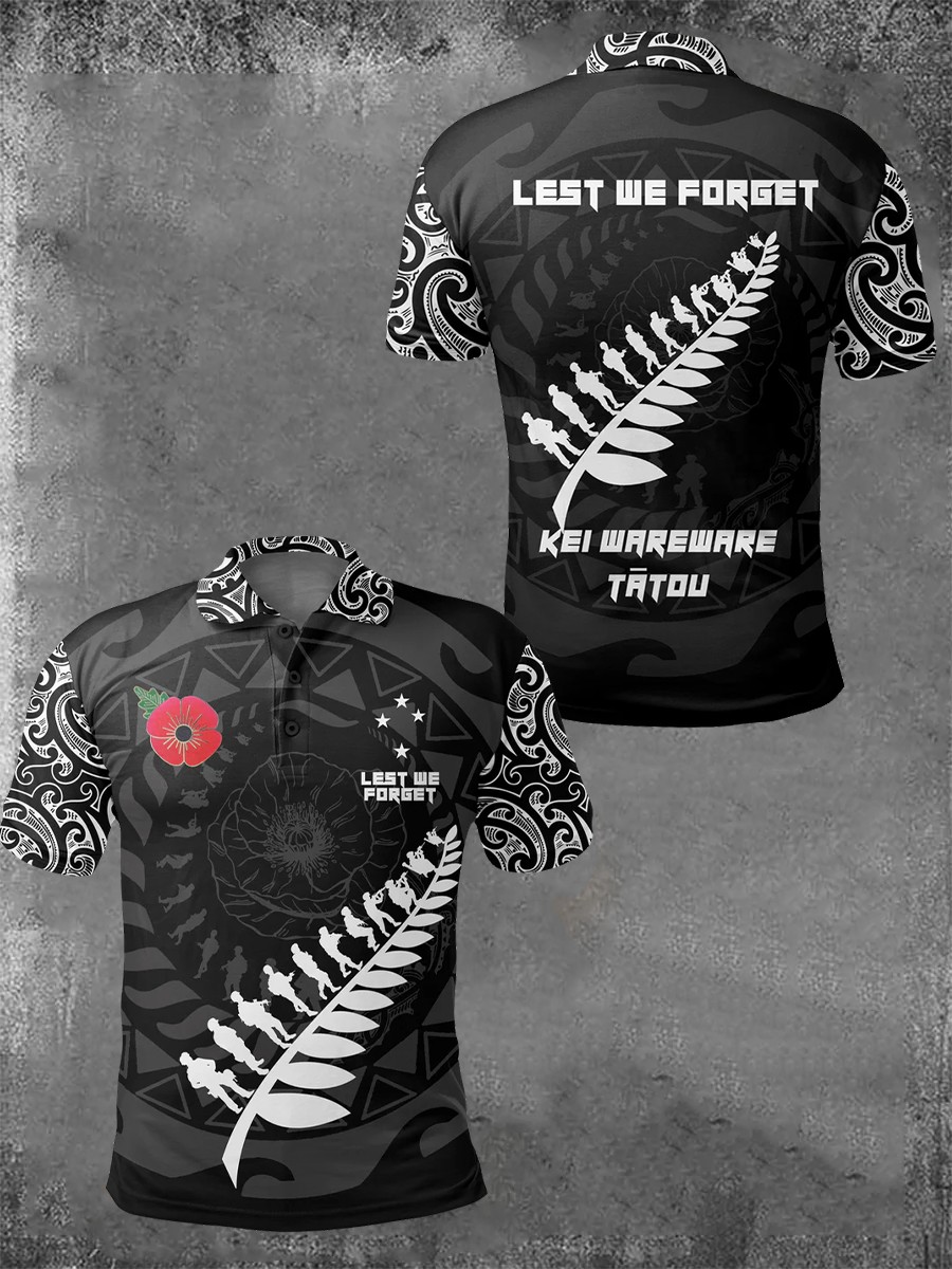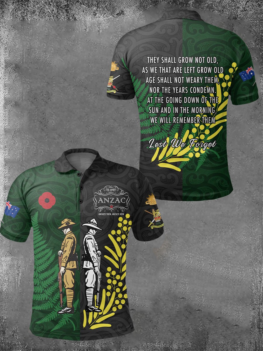 Men's New Zealand Australia Anzac Day Lest We Forget Short-Sleeve Polo Shirt