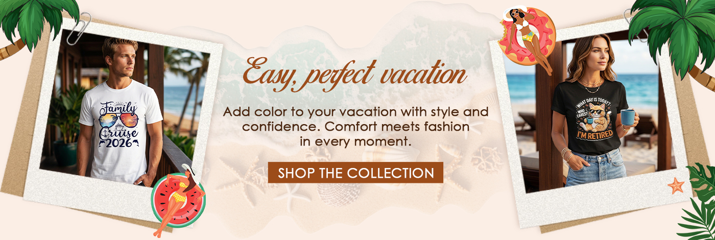 Vacation is not just about relaxation; it’s also a time to showcase your personal style. Whether you’re by the beach or enjoying city leisure, our vacation apparel lets you stay stylish while relaxing. Wear it and experience the ease and joy that vacation brings.