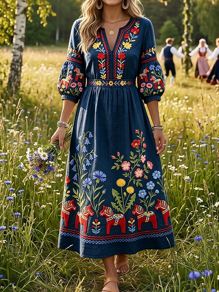 Damsvänggunga i vintagestil från Sverige med kornblomsmönster och V-ringning