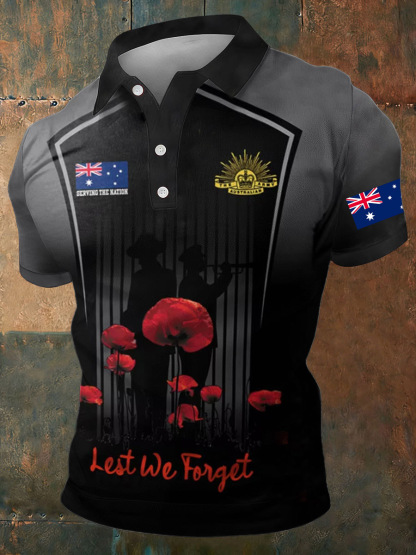 Men's Australia Anzac Day Lest We Forget Casual Short Sleeve Top