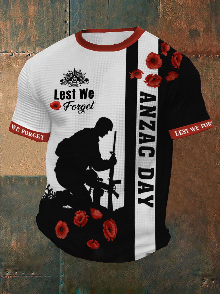 Men's Australia Anzac Day Lest We Forget Casual Waffle Short Sleeve T-shirt