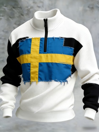 Men's Retro Swedish Badge Art Printed Waffle Sweatshirt