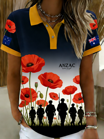Retro Australian ANZAC Day Print Casual Polo