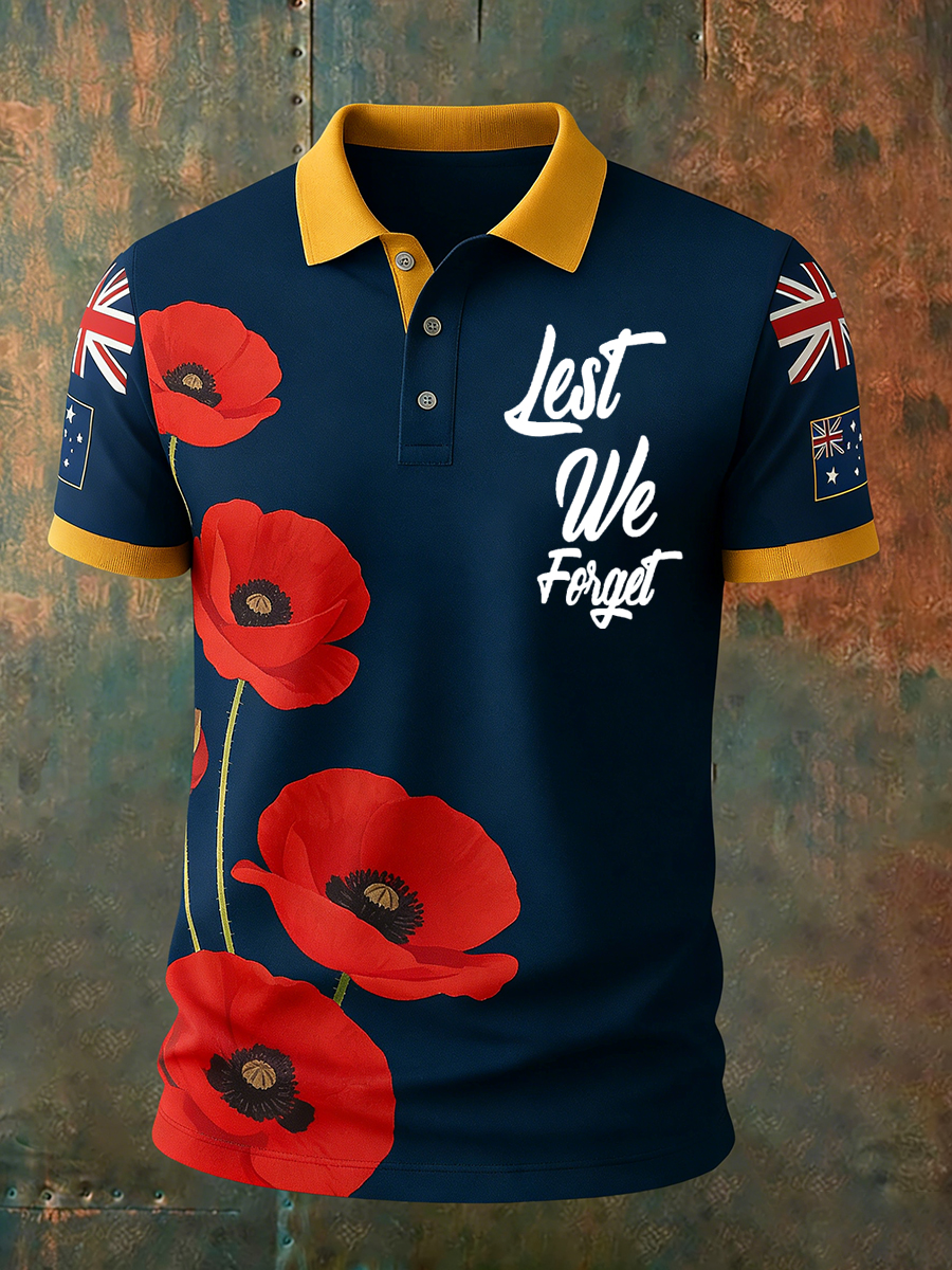 Retro AustralianStyle ANZAC Day Print Casual Polo