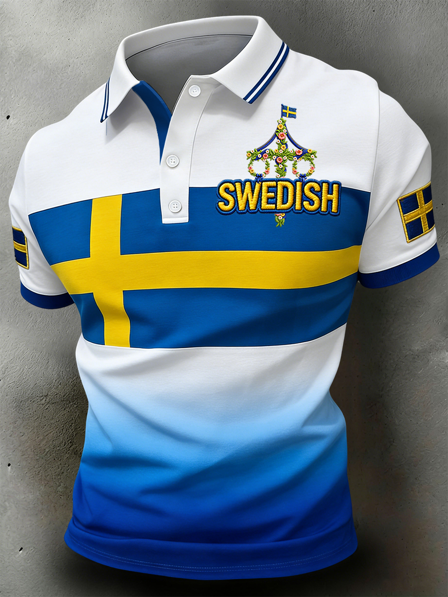 Retro svensk midsommar geometrisk lapptäcke ledig poloströja