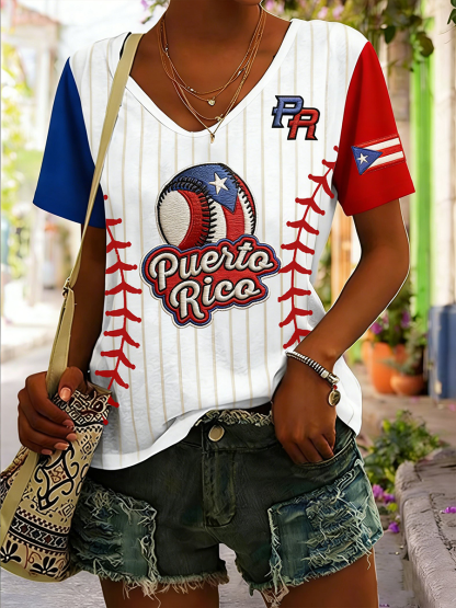 Women‘s Puerto Rico Baseball V-neck T-shirt