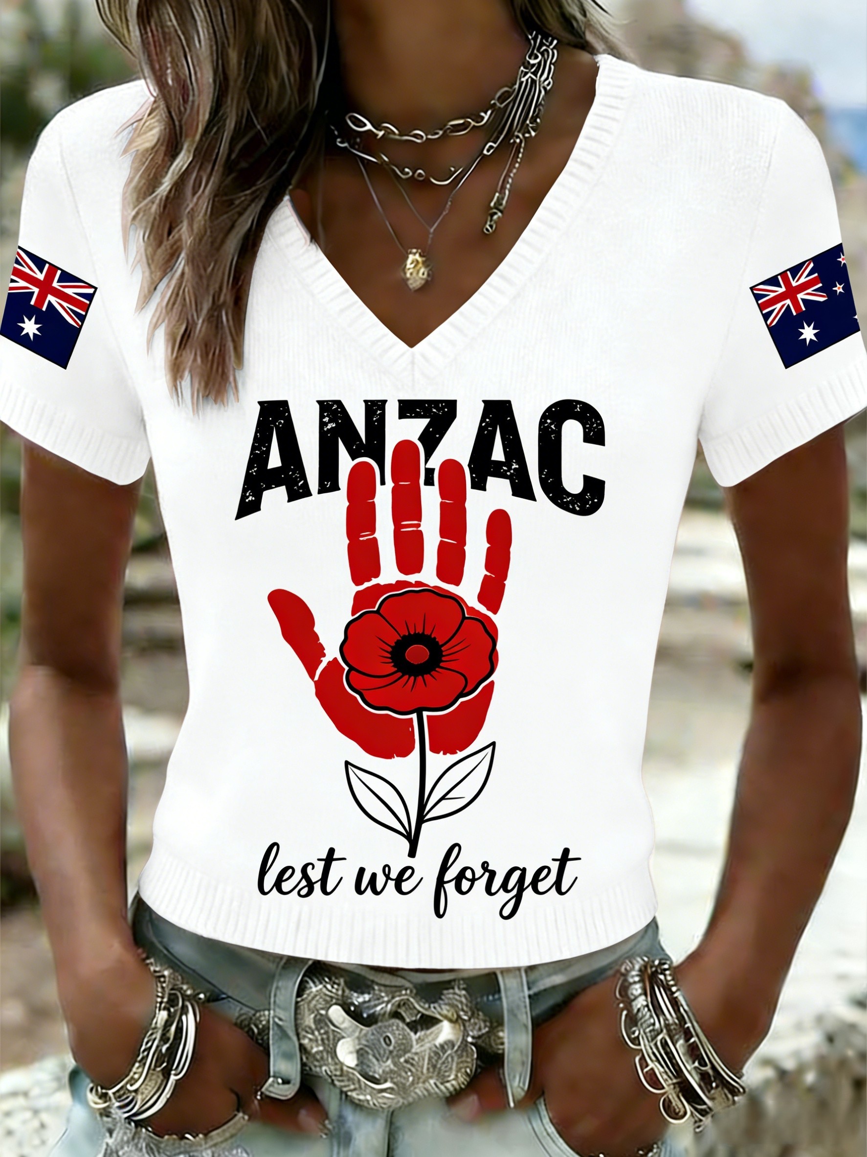 Women's Australia Anzac Day Lest We Forget V-Neck Short-Sleeve T-Shirt