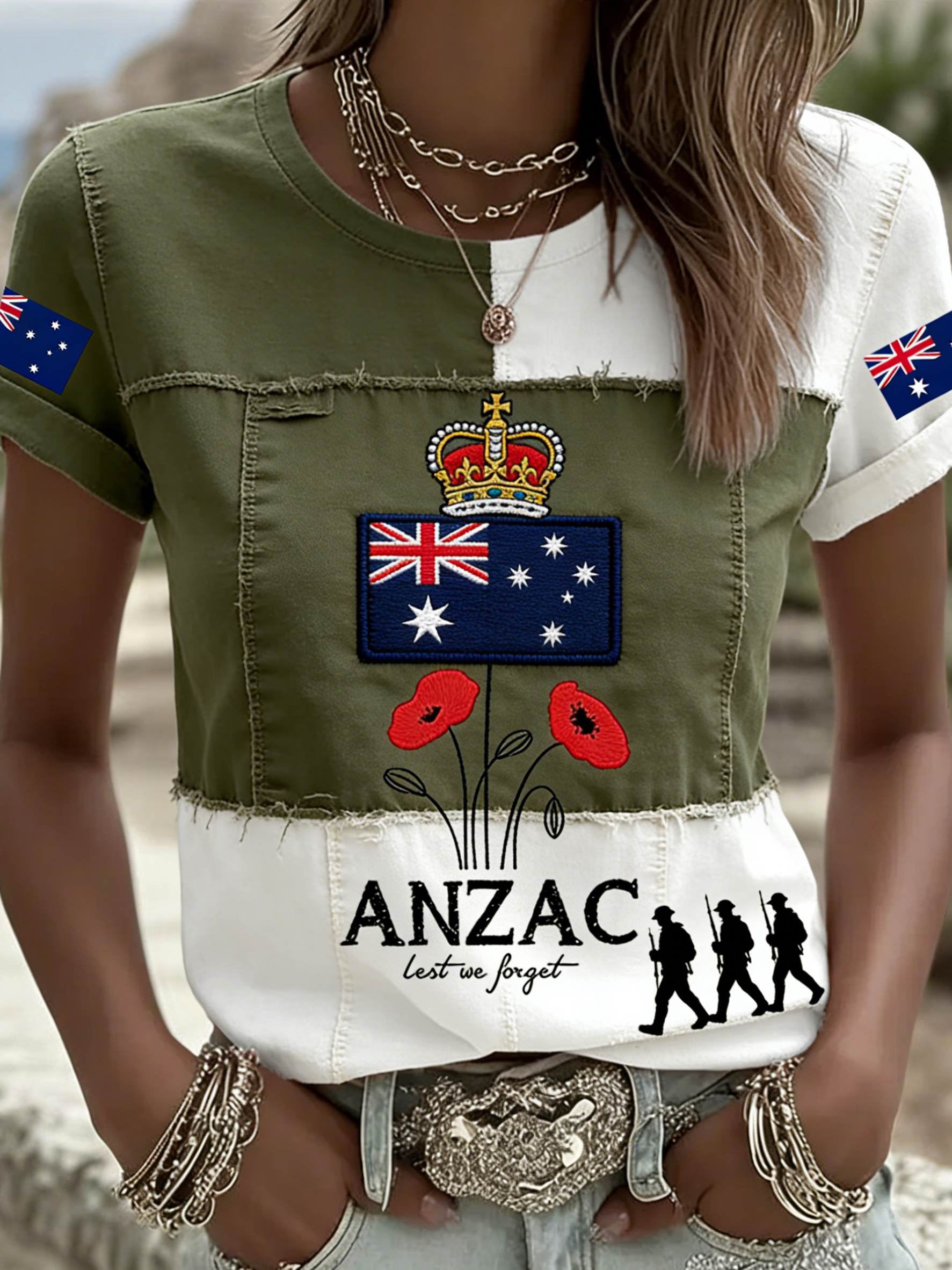Women's Retro Australian ANZAC Day "Never Forget History" Printed T-Shirt
