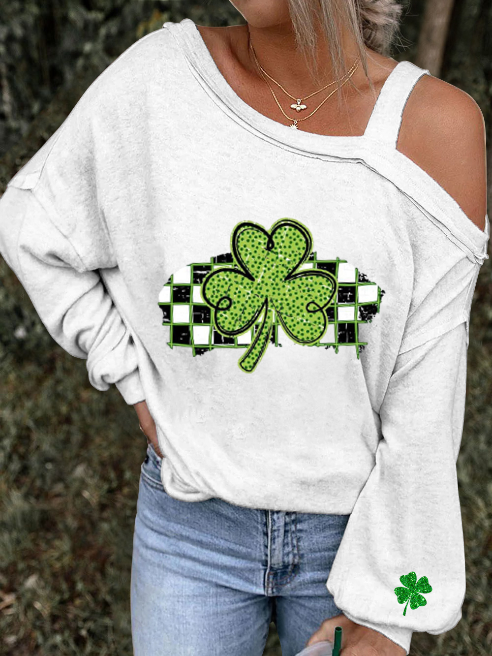 Women's Retro St. Patrick's Day Casual Long-Sleeve Off-the-Shoulder Top