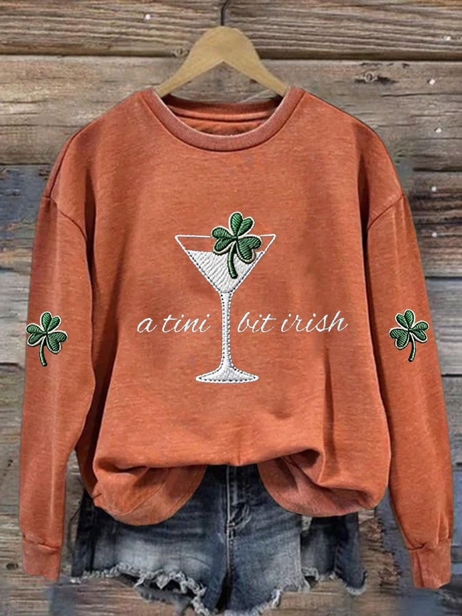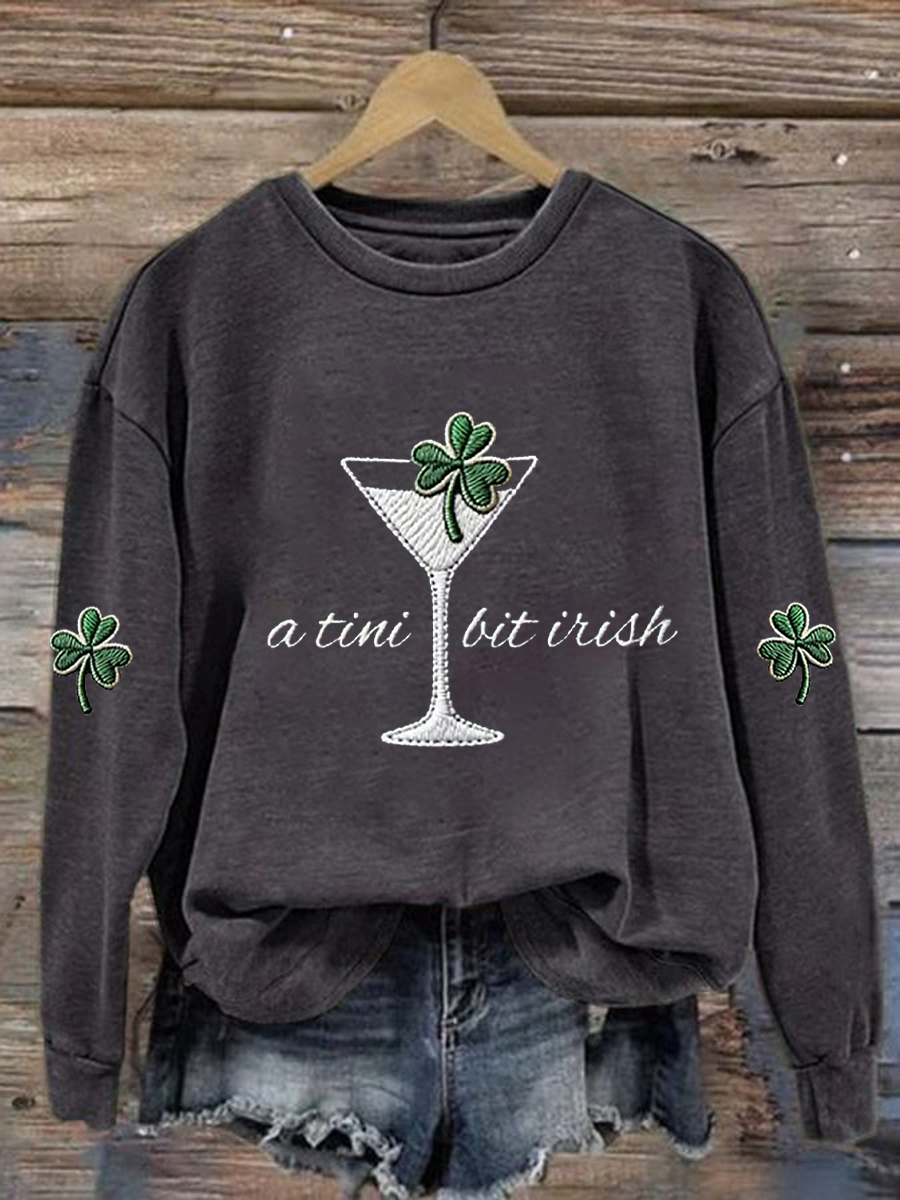 Women's St. Patrick's Day A Tini Bit Irish Shamrock Art Print Sweatshirt