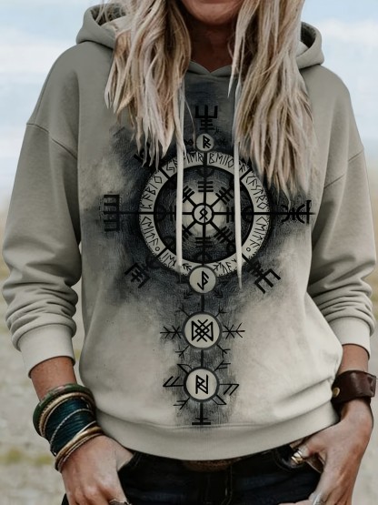 Women's Vintage Nordic Viking Art Printed Hooded Sweatshirt