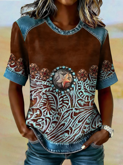 Women's Western Vintage Art Print Classic Short Sleeved T-Shirt